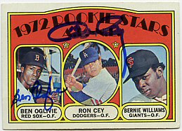 1972 Topps (upper left), 1973 Topps (upper middle), 1975 Topps (upper right), 1982 Topps (lower left) and 1983 Topps (lower right)