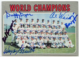 1970 Topps (upper left), 1972 Topps (upper right) and Ron Lewis 1969 Mets postcard (bottom)