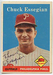 1958 Topps (upper left), 1959 Topps (upper middle), 1960 Topps (upper right), 1961 Topps (middle left), 1962 Topps (middle middle), 1963 Topps (middle right), 1963 Topps Buy back (lower left) and 1970 Fleer (lowerright)