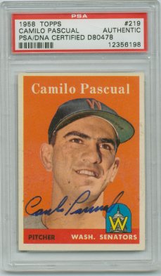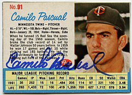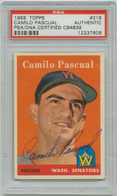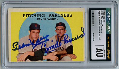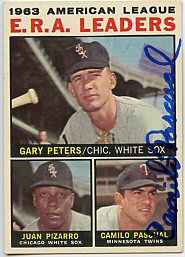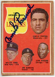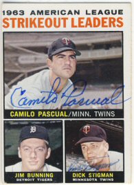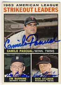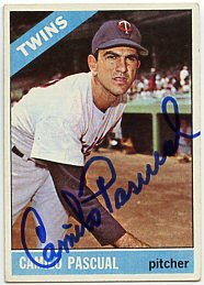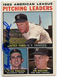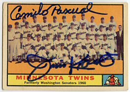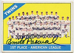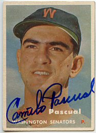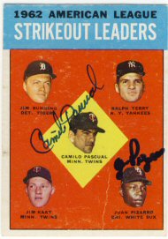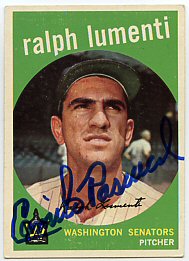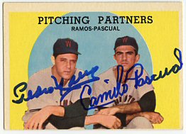 1959 Topps (Pascual is pictured on Lumenti's card)(upper left), 1964 Topps (upper right), 1964 Bazooka (bottom) ($30)