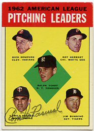 1955 Topps Double Header (left), 1958 Topps (middle) and 1964 Topps Pitching Leaders (right) ($30)