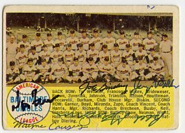 1955 Topps (upper left), 1958 Topps (upper right), picture he enclosed (middle) and book advertisement (bottom)