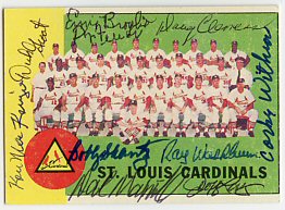1956 Topps (upper left), 1958 Topps (upper right), 1959 Topps (middle left), 1961 Topps (middle right) and book advertisement he enclosed (bottom) ($10)