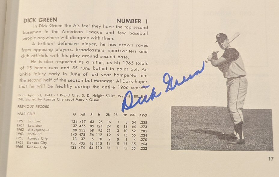 1966 Athletics Yearbook ($20 for this Yearbook, 1966 Topps and 1966 Topps Athletics team card)