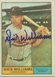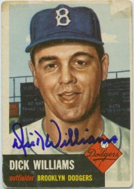 1953 Topps (upper left), 1961 Topps (upper middle), 1987 Topps (upper right) and signed postcard he included (bottom)
