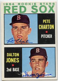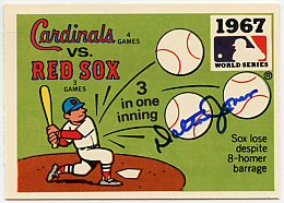 1965 Topps (upper left), 1966 Topps (upper middle), 1970 Topps (upper right), 1971 Topps (lower left), 1973 Topps (lower middle) and 1980 Fleer (lower right) ($30 for these cards and a Wheeldon print)