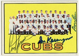 1966 Topps (upper left), 1967 Topps (upper right), 1967 Topps (lower left) and 1969 Topps Deckle Edge (lower right)