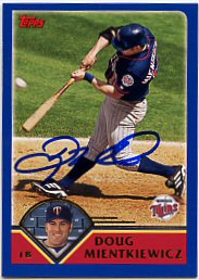 Mr. Mientkiewicz was kind enough to include the 2002 Topps for me. I only sent him the 2003 Topps Heritage to be signed.