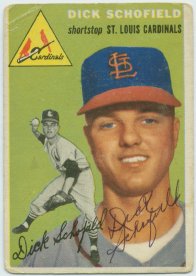 1954 Topps (upper left), 1955 Topps (upper right), 1961 Topps (lower left) and 1969 Topps (lower right)