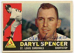1959 Topps (left), 1960 Topps (middle) and 2009 Baseball Magazine card he enclosed (right)