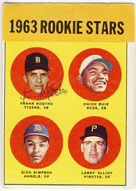 1963 Topps (upper left), 1963 Topps (upper right), 1966 Topps (lower left) and 1970 Topps (lower right)
