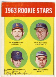 1963 Topps (upper left), 1964 Topps (upper middle), 1966 Topps (upper right), 1966 Topps (lower left) and 1967 Topps (lower right) (I enclosed a blue Staedtler and $20)