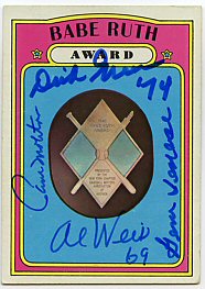 1972 Topps (upper left), 1973 Topps (upper middle), 1973 Topps (upper right), 1975 Topps (lower left), 1978 Topps (lower middle) and 1982 Topps (lower right)