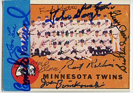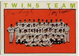 1964 Topps (left) and 1965 Topps (right) (Didn't sign 1963 Twins team card)