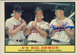 1961 Topps (left), 1961 Topps "A's Big Armor (middle) and 1964 Topps (right)