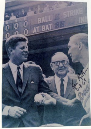 1963 Topps (upper left), 1964 Topps (upper right) and pictures he enclosed (below)