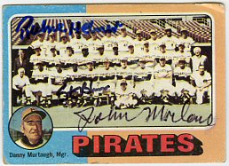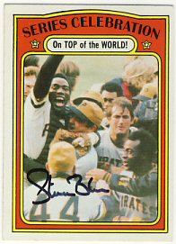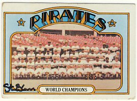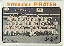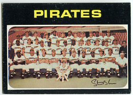 1971 Topps (upper left), 1972 Topps (upper right), 1972 Topps W.S. Celebration (lower left) and 1973 Topps Pirates Team card (lower right)