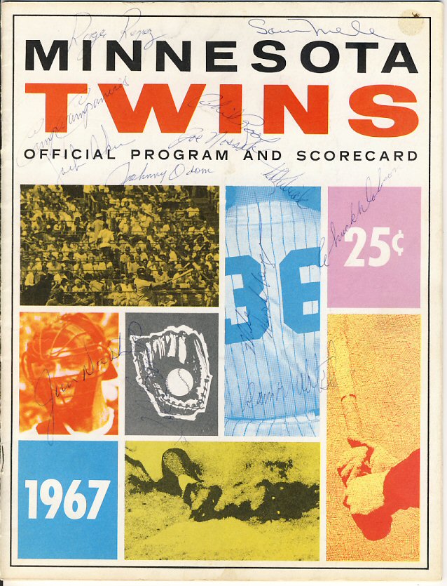 Signed By: Sam Mele, Roger Repoz, Bert Campaneris, Jack Aker, Johnny Odom, Joe Nossek, Phil Roof, Ted Kubiak, Chuck Dobson, Mike Hershberger, Ramon Webster, Jim Nash and Sal Bando