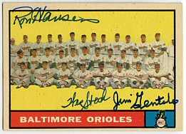 1961 Topps (upper left), 1962 Topps (upper middle), 1963 Topps (upper right), 1965 Topps (lower left) and 1965 Topps (lower right) I had included $10 with my request which he returned.