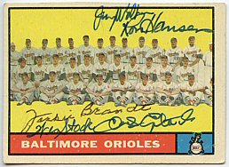 1961 Topps (upper left), 1961 Topps (upper right), 1963 Topps (lower left) and 1965 Topps (lower right)