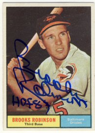 1961 Topps (left) and Hall of Fame postcard he enclosed (right) ($10)