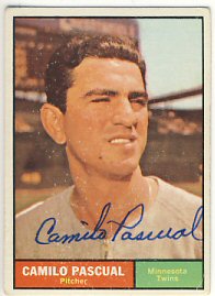 1959 Topps (Pascual is pictured on Lumenti's card)(upper left), 1964 Topps (upper right), 1964 Bazooka (bottom) ($30)