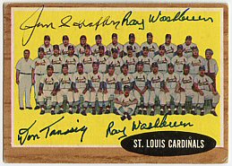 1962 Topps (upper left), 1962 Topps (upper right), 1963 Topps (lower left), and 1966 Topps (lower right)
