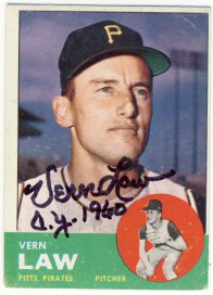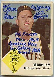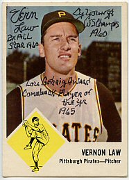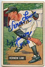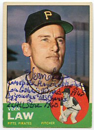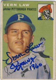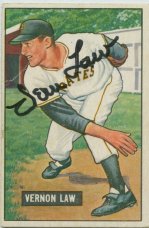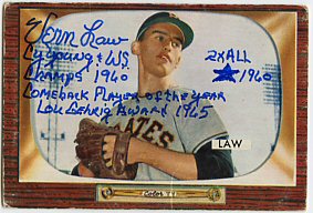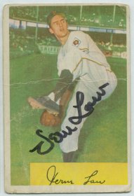 My first request resulted in my card being returned unsigned with a note explaining that he charges $5 per autograph. I re-sent my card with $5 and Mr. Law signed my 1958 Topps card and included a 1954 Bowman.
